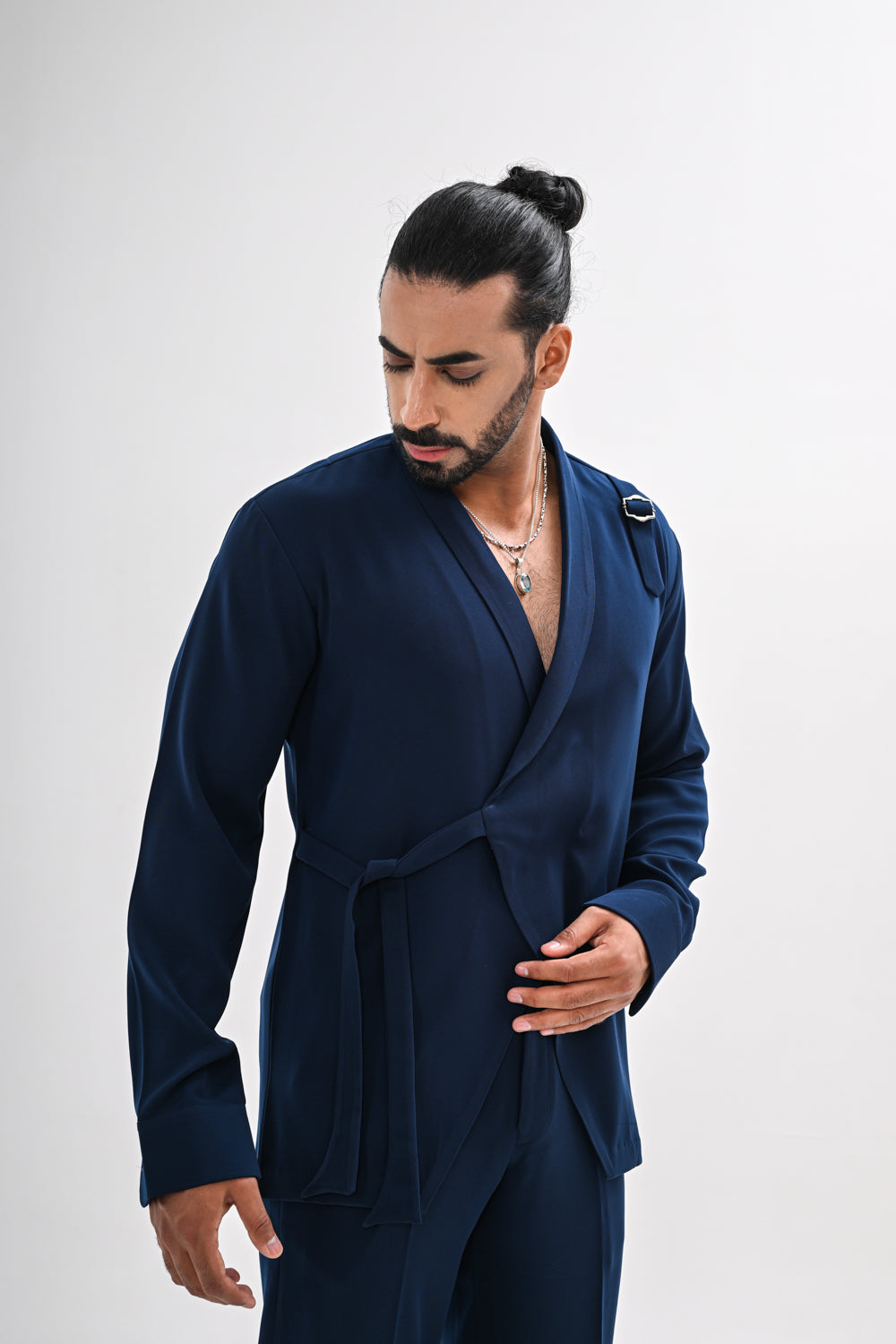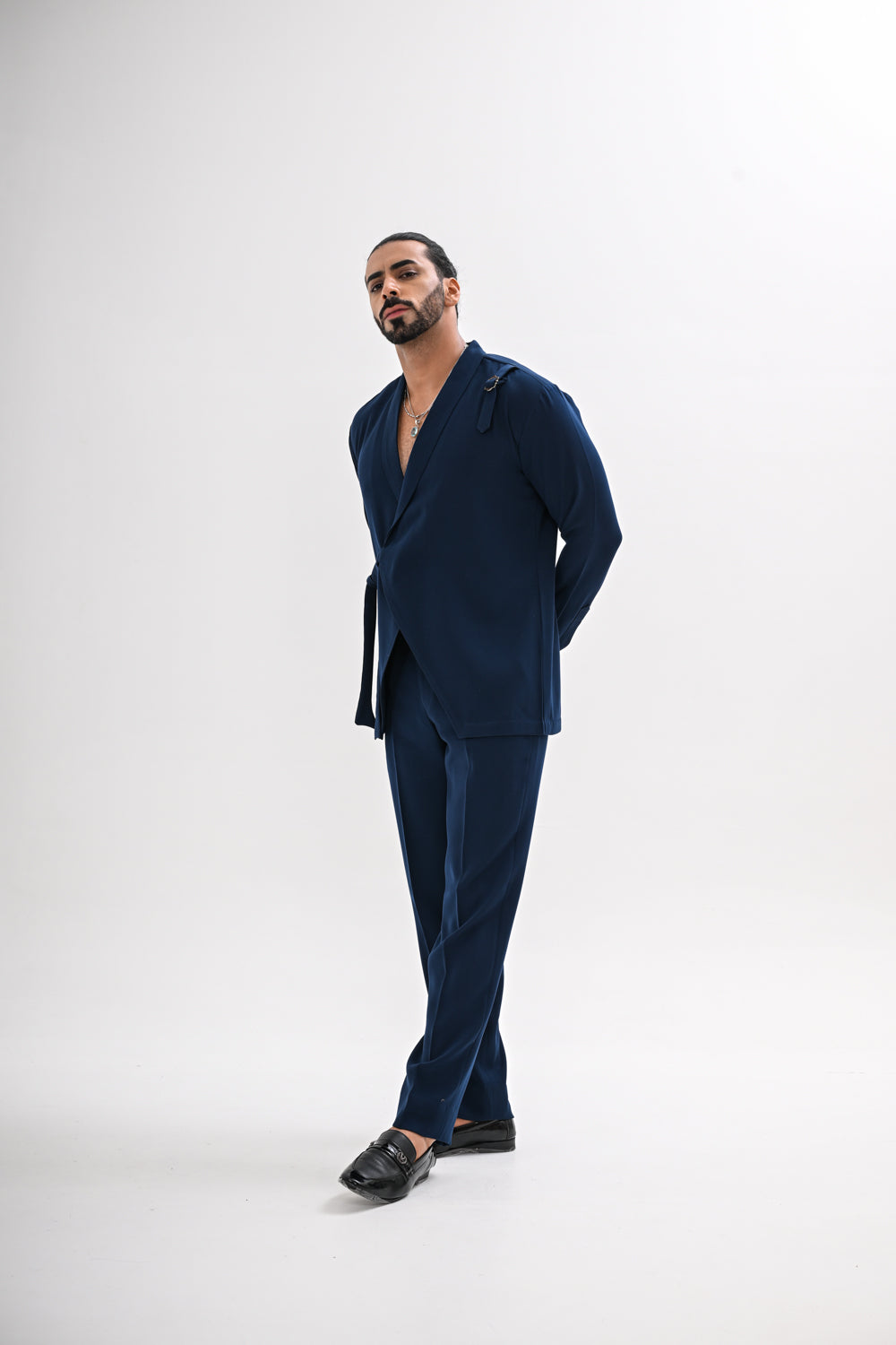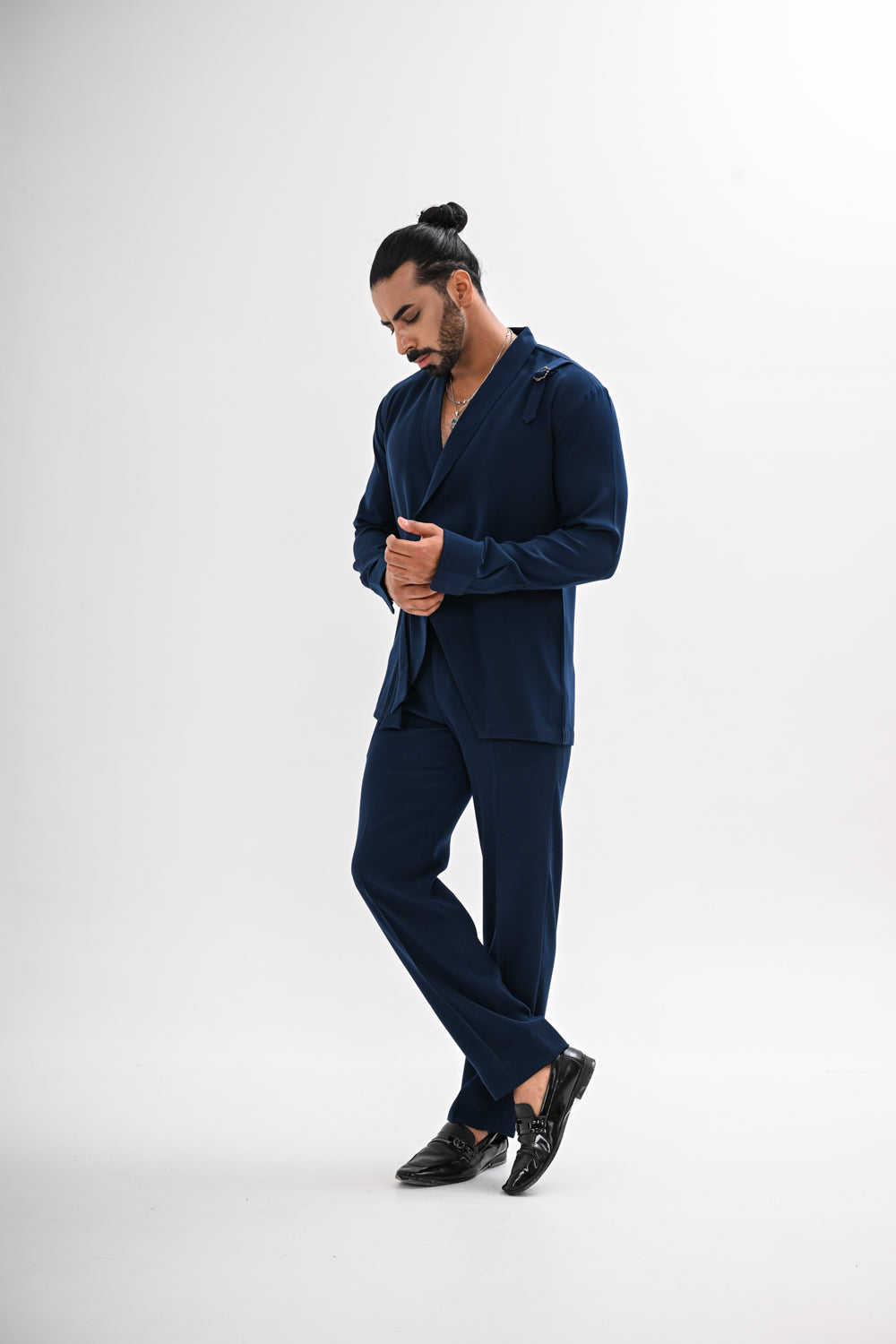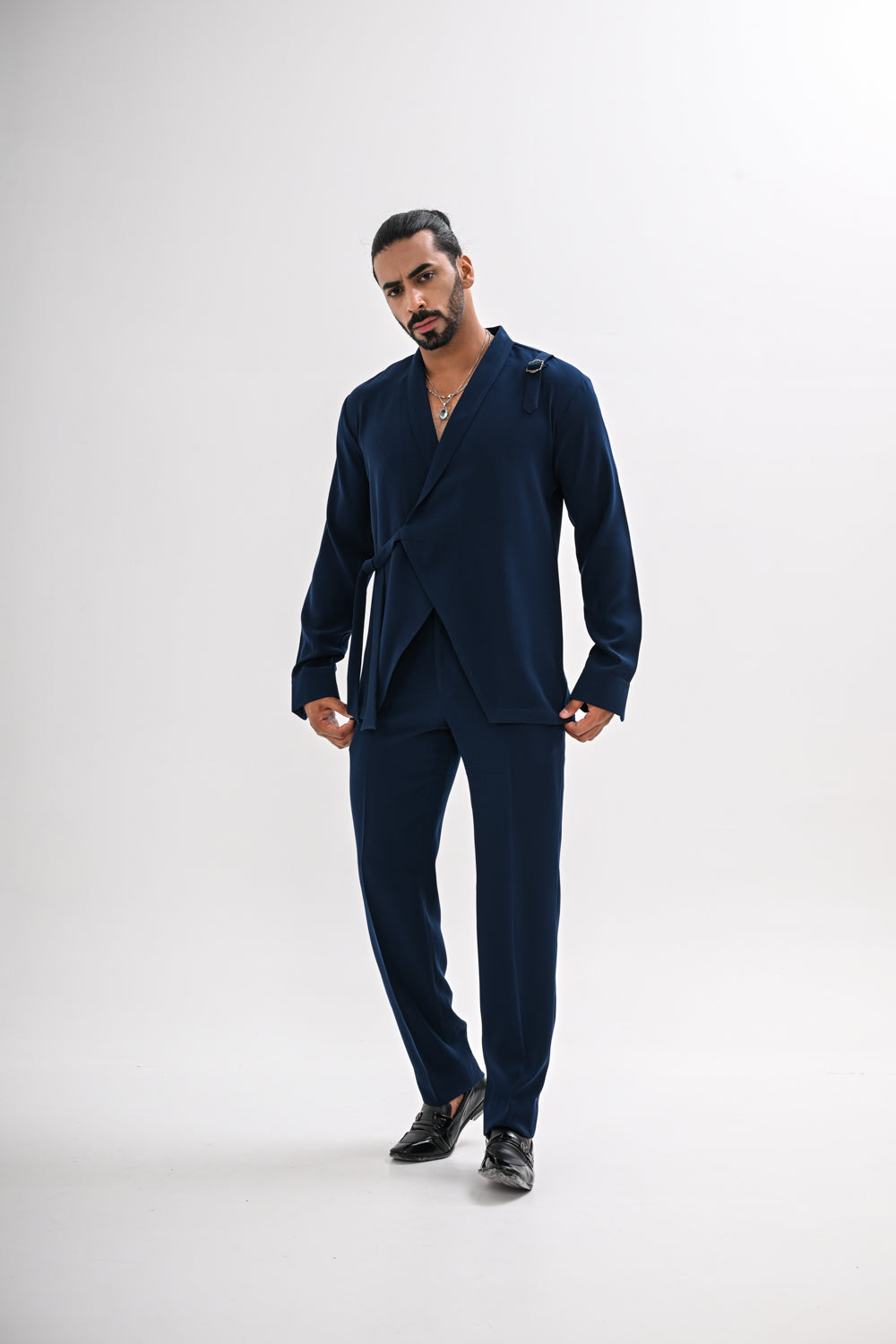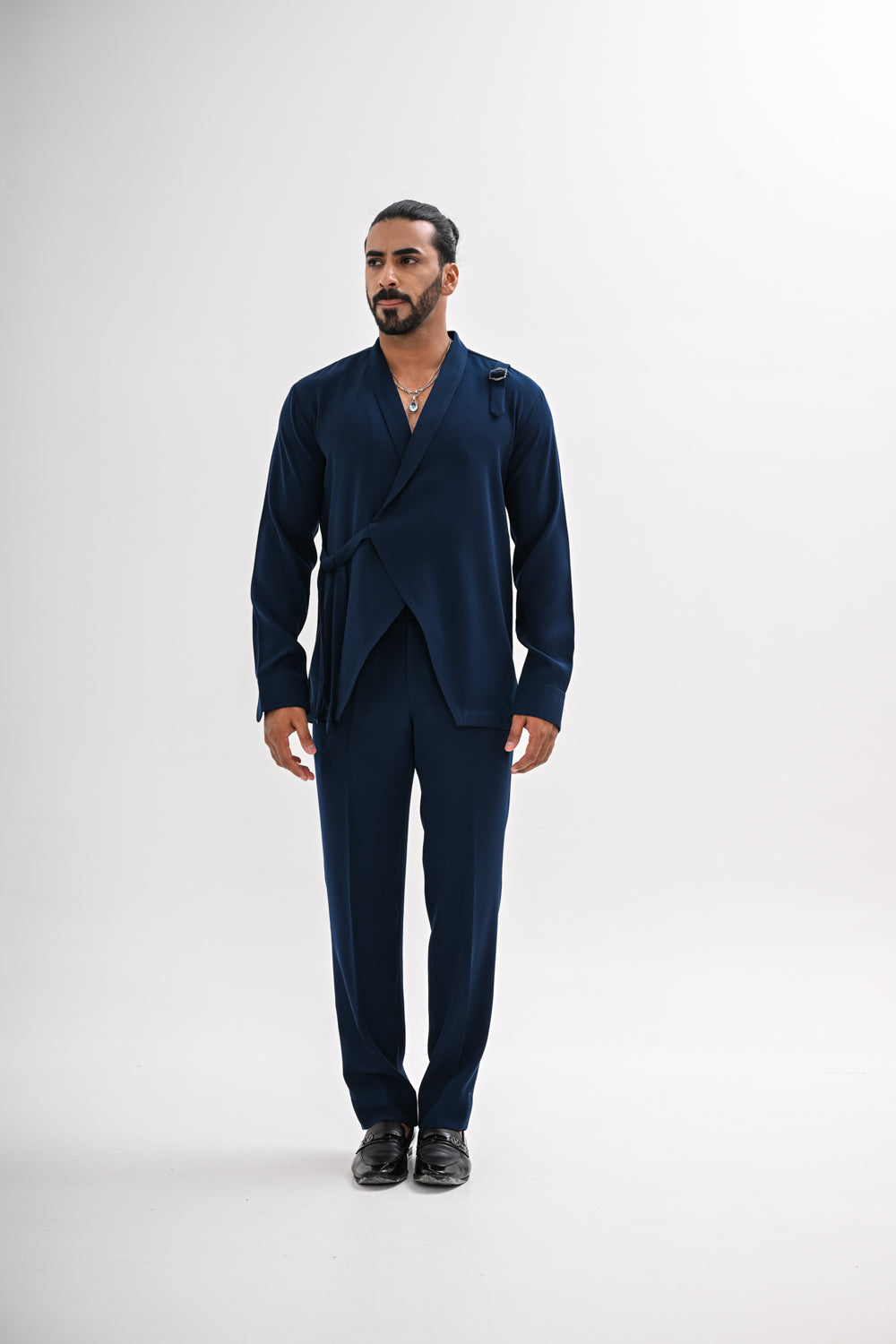 An exquisite Teal Cord Set, thoughtfully crafted on fine Banana Crepe fabric. This elegant two-piece ensemble features a paired with tailored trouser, reflecting a perfect balance of contemporary style. Please note, the actual color of the garment may vary slightly due to lighting conditions during photography.