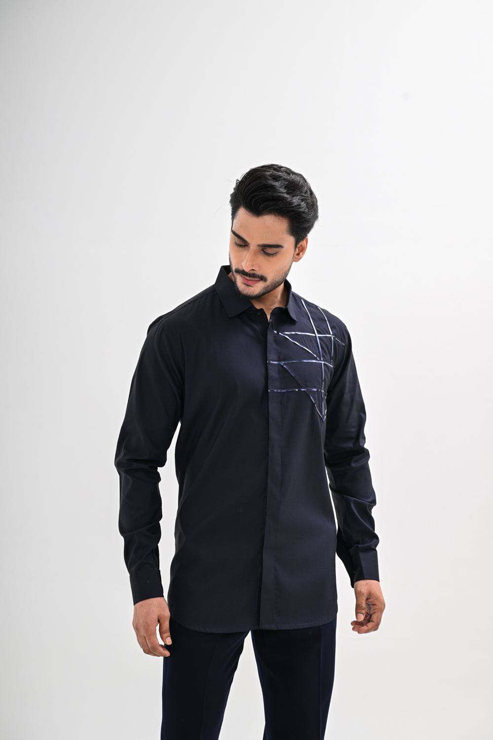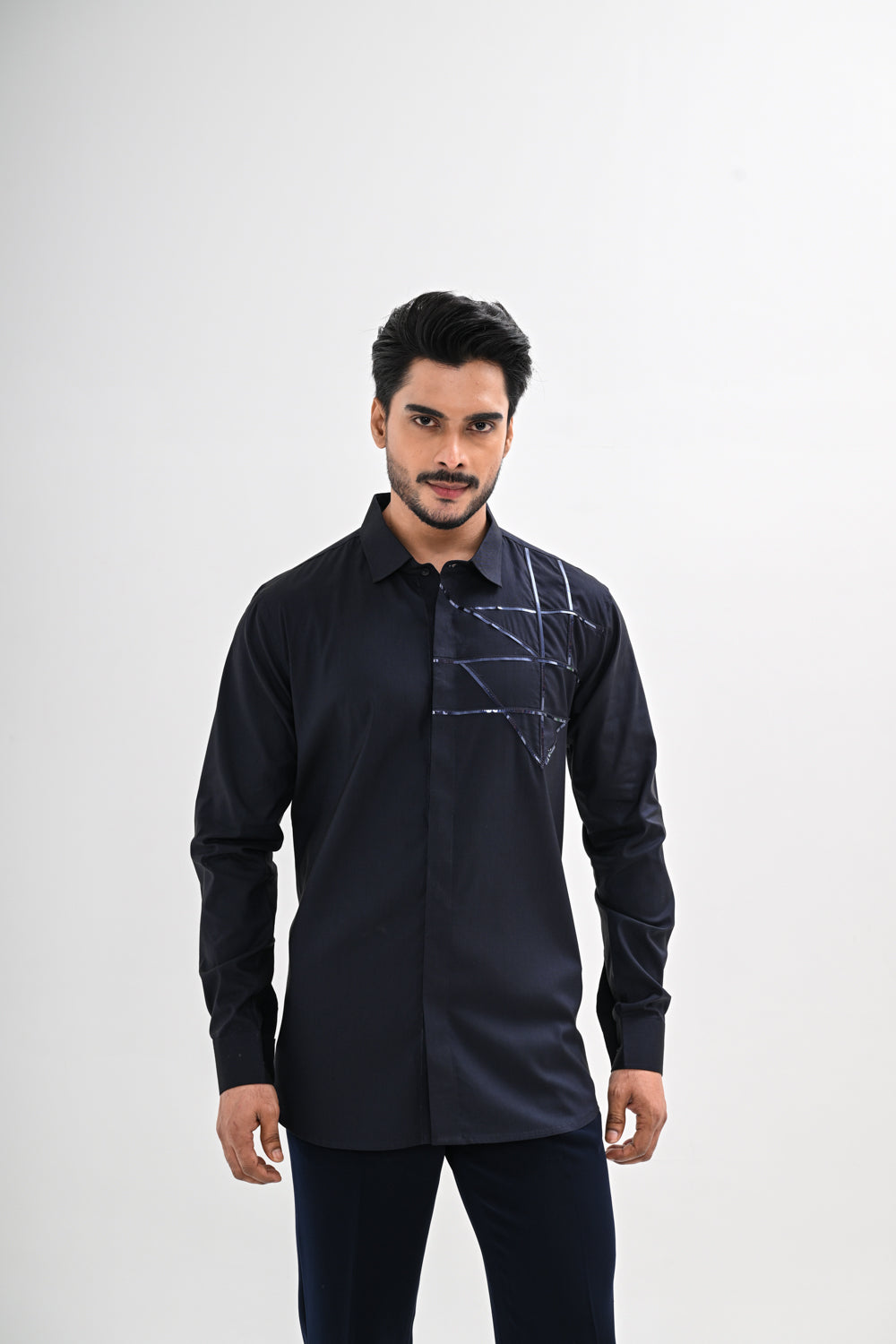 Featuring a Midnight Blue shirt with stripe detailing done on Giza cotton fabric. This contains only one piece. Color of the actual garment may vary due to lighting conditions during the shoot .